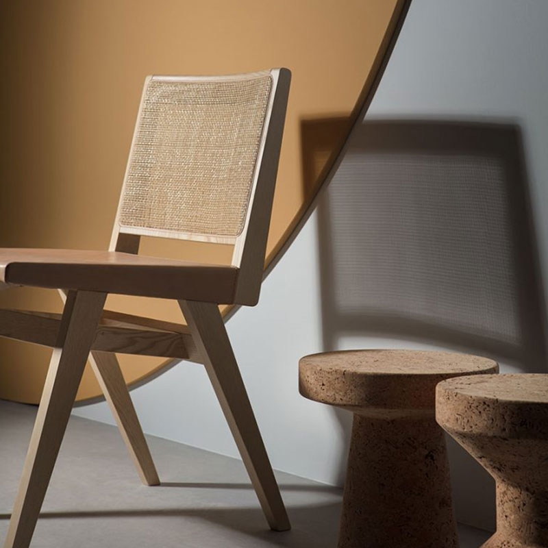 Chair with structure in ash wood and seat and back in Vienna straw. Perfect for both domestic and contract use.