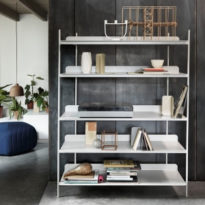 A contemporary take on the classic shelving system. COMPILE consists of a shelf and three heights of dividing tubes. Arrange the shelves and tubes as you please or order from the prearranged configurations.