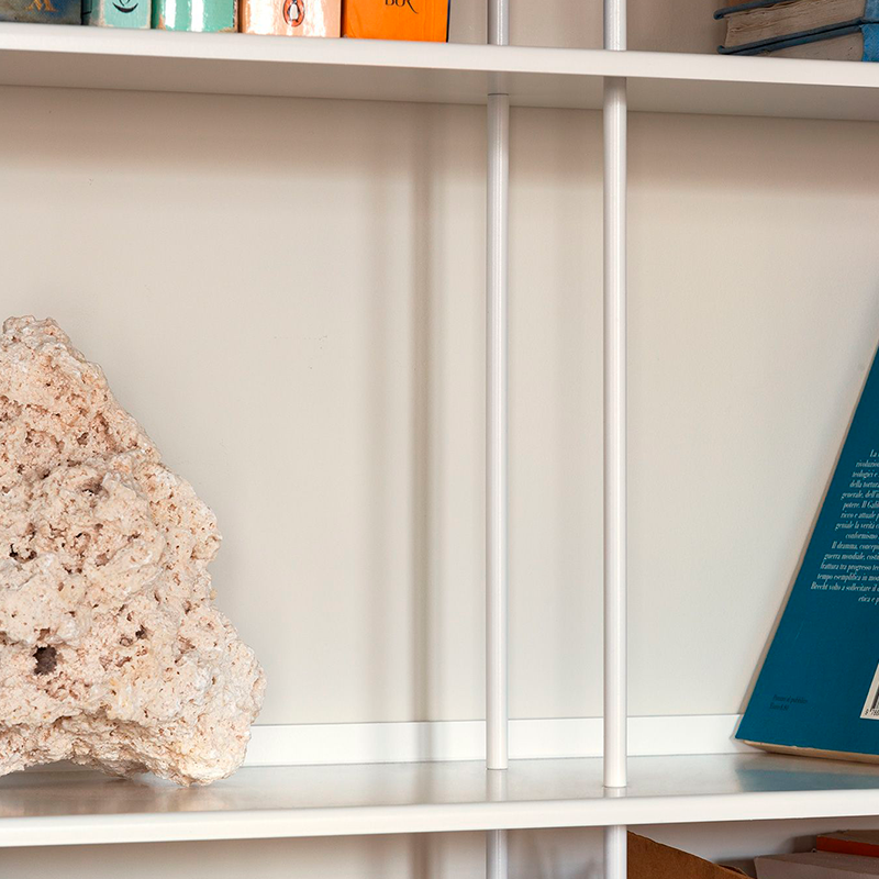 It can be suspended, to host books and plants, or it can have a floor base and work as a TV cabinet. It can be regular or personalised in both width and height. All of this in only 20 cm depth.