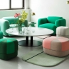 The pouf's classic velour surface has been replaced with two wool textiles in complementing tones, resembling the distinctive stripes of a circus... more details
