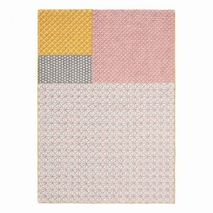 Made with thick wool yarns in an innovative reinterpretation of the petit point technique. Its designer, Charlotte Lancelot, is able to achieve tile-like patterns by using four different stitch lengths. The result is a rug with four distinct designs, as if it were recreating the mismatched floors that can often be found in old houses.