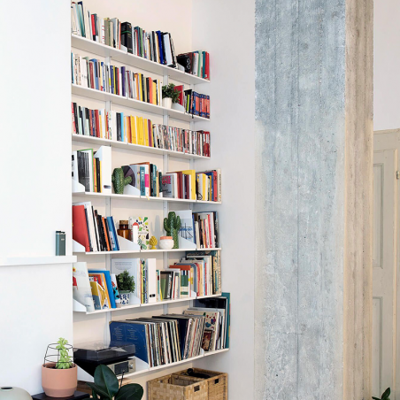 Kriptonite wall bookcase, fully configurable. Elements: - 04 Wall Mount H. 249 cm - 12 shelves L. 60 x D. 29 cm - 03 inclined shelves L 60 ... more details