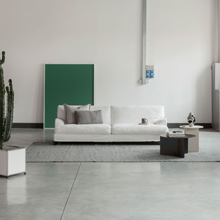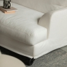 It has a solid wood structure, with front wheels and rear feet that allow for quick and easy movement of the sofa. It has excellent comfort thanks to the feather seat cushions and the polyester fiber backrests. Discover all the available upholstery here.