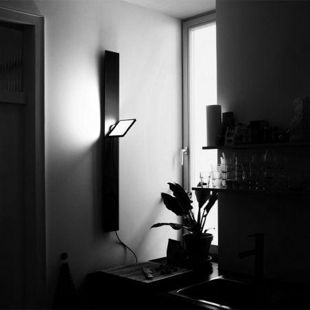 Piazza is a magnetic wall lamp, designed to move freely on the surface of a metal board according to the user’s needs. The aluminum head can be rotated 360 degrees and its intensity adjusted. The board comes in two different versions: with a linear board and a circular. The linear version of the Piazza Lamp can be hung either vertically or horizontally to suit different applications. Available in different colours, it gives great sculptural impact to its architectural environment.
