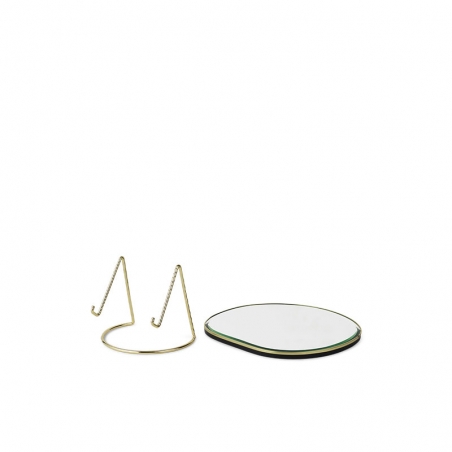 Set on a slender, detachable metal stand, our shape-shifting Pond Mirror is cut in an asymmetrical silhouette for an intriguing take on classic design. Inspired by free-flowing movements of water, the organically-shaped mirror is made to sit on any surface - from a bedroom dressing table or hallway console to a bathroom shelf - it is an elegant way to reflect your daily routine.
