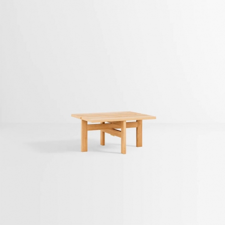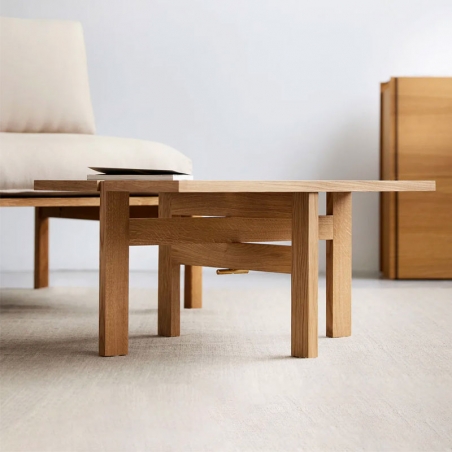 The MOEBE Rectangular Coffee Table is low in profile, standing just 30cm from the floor. The cross-shaped leg frame gives a feeling of space by suspending the tabletop along the middle and keeping the corners free. Each table arrives flat packed and is threaded together piece by piece via a brass screwing mechanism at its centre. Available in two lengths, made in Europe and FSC-certified.
