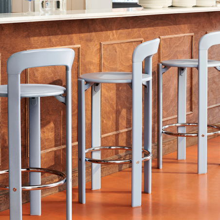 Based on the original Rey Collection designed by Swiss designer Bruno Rey in 1971, HAY has teamed up with Dietiker to relaunch the Rey Bar Stool. Featuring Dietiker’s unique screwless wood-to-metal connection, the iconic stool has an uncluttered silhouette with angled legs that balance the distinctively rounded edges. Its solid construction, strength and stackable design give it a timeless quality that makes it suitable for using in a wide variety of domestic, public or corporate settings. Made in solid wood, it is available in original colours, as well as new tones selected by HAY.