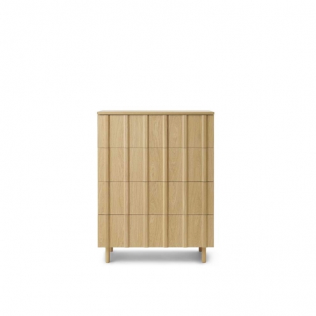 Characterized by an inherently Scandinavian design ethos, the Rib collection is inspired by the architectural charm of Nordic summerhouses from the 1960’s, renowned for their picturesque wooden facades adorned with vertical wooden slats. Drawing from this Scandinavian heritage, the collection features trapeze-shaped wooden panels that pay homage to this architectural tradition, infusing the design with character and timeless appeal. Available in Oak or Soft Black finishes, each piece is crafted using a high-quality blend of lacquered oak veneer and solid oak, ensuring not only durability, but also a minimalistic and natural aesthetic. Conclusively, the Rib collection presents a versatile and timeless addition to any residential or commercial environment.