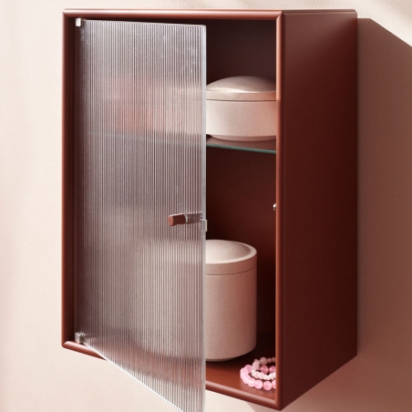RIPPLE is a small vitrine cabinet with a door in rippled glass – perfect for the bathroom. It is available in all of Montana’s 41 lacquer colours.