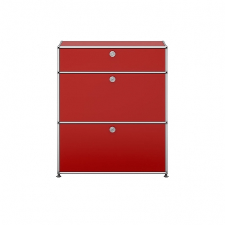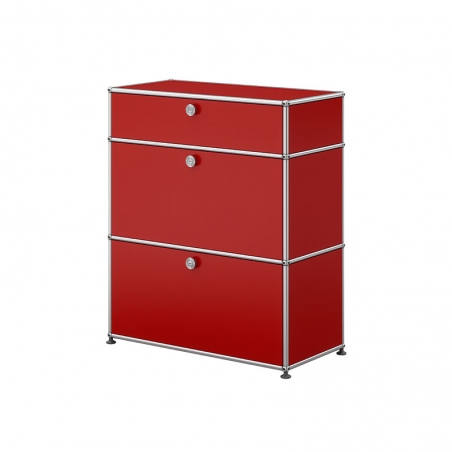 The Haller multifunctional shelf features an elegant tubular steel structure and the same essential design as the rest of the USM furniture. A piece of furniture with two large shelves and a drawer. Its panels painted in USM's iconic colors give any environment a touch of freshness, both in the office and at home.