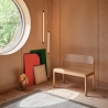 The Workshop Bench is a contemporary, playful approach to the wooden bench. It offers a new perspective on a traditional Scandinavian piece of furniture, with a distinct silhouette created by its solid wooden legs and delicately curved seat. An extension of the Workshop Chair, the small 2-seater offers a more sculptural look with simple yet considered details. Designed to stand on its own, it is an ideal addition to a narrow space such as the hallway or as a statement piece in its own right.