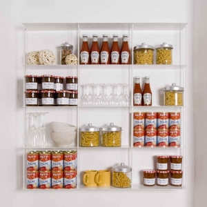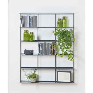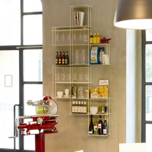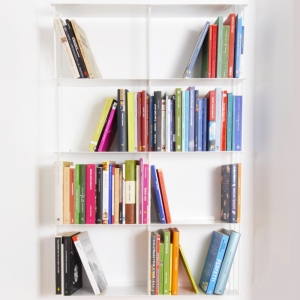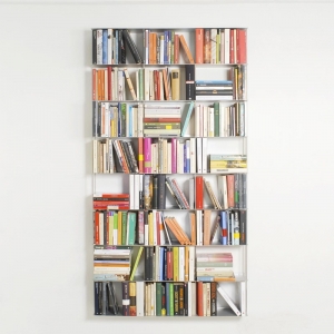 Il sistema a parete Krossing realizzato semplicemente con piani e tubetti in alluminio naturale o verniciato bianco, è studiato per contenere un gran numero di libri, cd, dvd, bottiglie, etc. con una profondità di 15 cm. Vengono proposte strutture di svariate larghezze, con allestimento da 4/8 piani, oppure utilizzando i componenti base è possibile progettare soluzioni a proprio piacimento. La Krossing, una volta riempita, tende a "scomparire" per lasciare migliore visibilità a libri, cd, dvd, ecc. Capacità massima 256 libri.