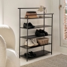 La collezione Dora è una serie di arredi basati sui principi di un design semplice ma funzionale. Realizzato in ferro verniciato a polvere, l'elegante e moderno Dora Rack è dotato di cinque ampi ripiani. Il pezzo versatile è ideale per riporre le scarpe nel corridoio o per organizzare ordinatamente vari oggetti in tutta la casa.