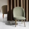 Piccola poltroncina con gambe in ottone disponibile in diversi materiali.