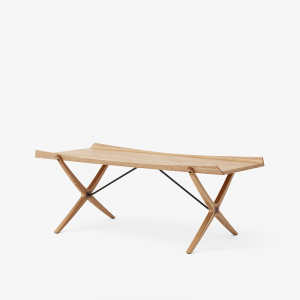 Dopo aver sperimentato per anni il concetto di una struttura in legno laminato ispirata alle vecchie racchette da tennis in legno, il duo di designer danesi Hvidt & Mølgaard ha lanciato X nel 1959, una poltrona lounge con una caratteristica silhouette inclinata e un'estetica sobria.
