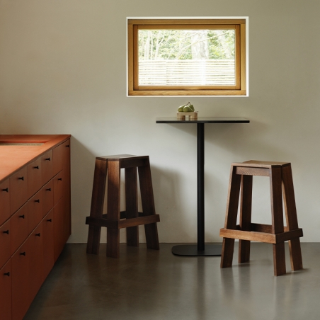 Traendo ispirazione dagli ambienti da bar a cui sono destinati, Let Barstool & Stool sono progettati utilizzando chiari riferimenti alle assi di legno parallele delle tradizionali casse di birra in legno. Let è composto da due assi parallele leggermente inclinate, che assicurano stabilità strutturale e una seduta comoda. Let è disponibile come sgabello e sgabello da bar in altezze di 65 cm o 75 cm.