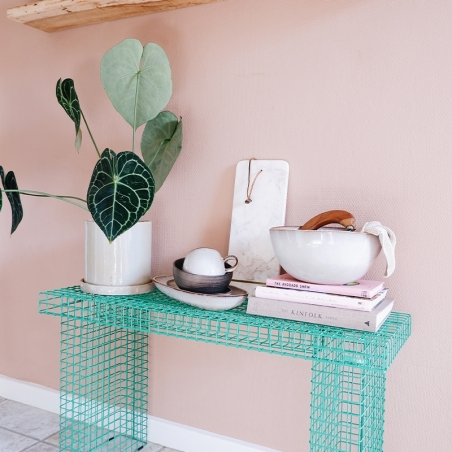 La panca può essere utilizzata sia come appoggio, sia per sedersi: può reggere facilmente, anche se è realizzata in puro filo metallico. WIRE BENCH è realizzata in modo che tu possa usarla sia all'interno che all'esterno: si adatta perfettamente a entrambi gli scopi.