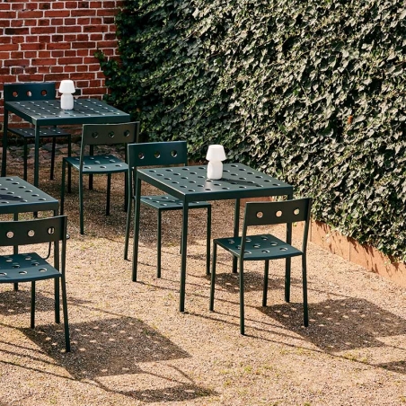 Disegnata per HAY da Ronan ed Erwan Bouroullec, la Balcony Chair è una sedia da pranzo elegante e funzionale per l'uso esterno. Il design squadrato è ammorbidito dallo schienale arrotondato, con i molteplici fori nel sedile e nello schienale che rafforzano la costruzione, oltre a creare un'espressione distinta.