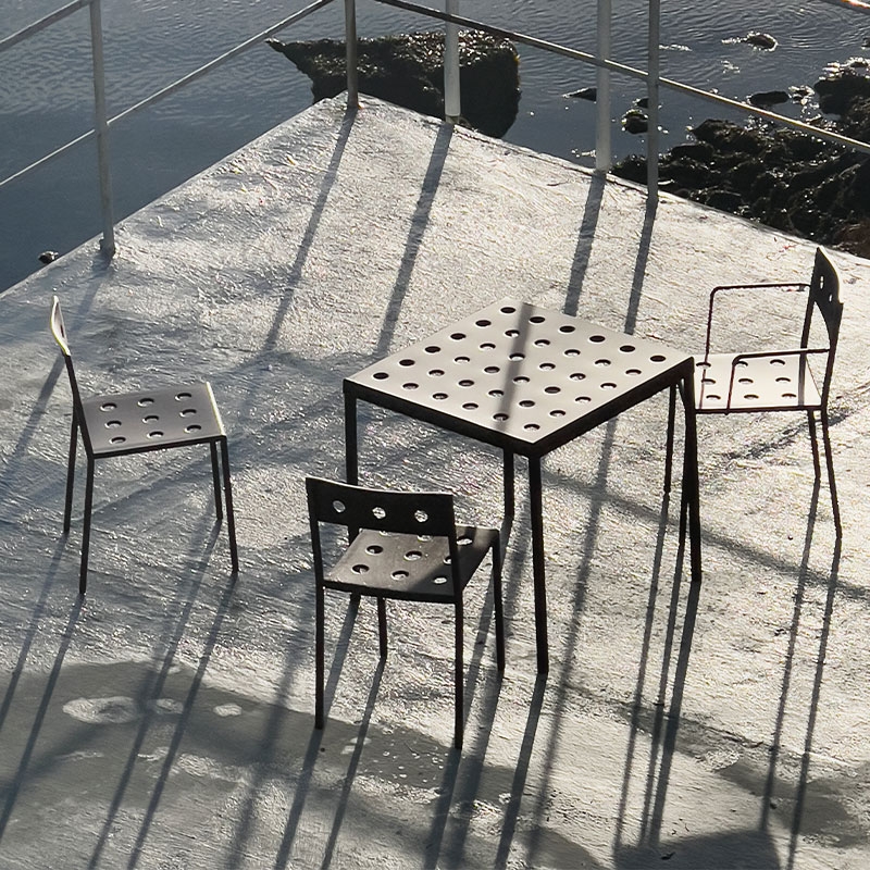 Progettato per HAY da Ronan e Erwan Bouroullec, il Balcony Table è un elegante tavolo da pranzo per uso esterno. Il semplice design rettangolare è ammorbidito da gambe sottili, con i molteplici fori sulla superficie del tavolo che rafforzano la costruzione, oltre a creare un'espressione distinta.