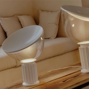 Lampada da tavolo progettata dai maestri Piergiacomo e Achille Castiglioni per Flos, Taccia è in produzione dal 1962.