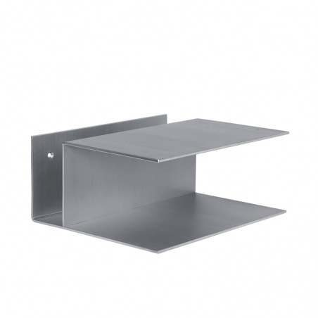 Il comodino Lager, appartenente alla famiglia Lager, è realizzato in lamiera di alluminio finemente spazzolata ed è progettato per garantire un montaggio a parete semplice.