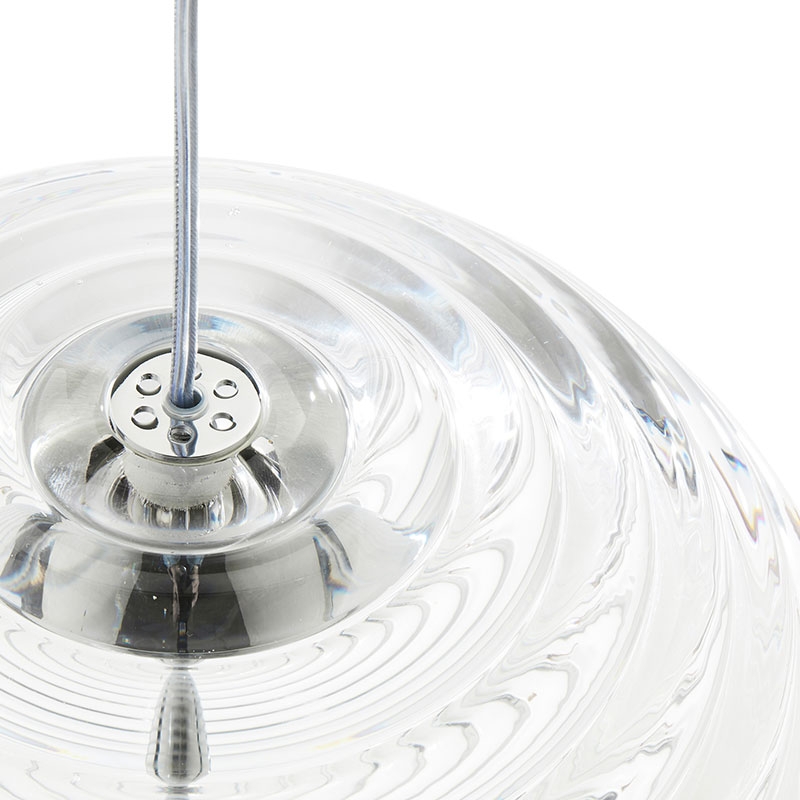 La lampada a sospensione Press Sphere è progettata per catturare e rifrangere la luce e proiettare ombre suggestive. La pesante lampada scanalata è realizzata con spesse spirali di vetro puro. Progettata per essere appesa in multipli, ma ugualmente suggestiva anche da sola, è dotata di un anello di LED caldi da 2700k.