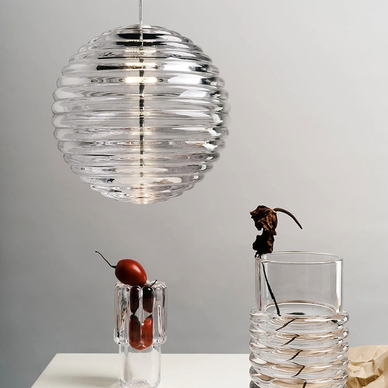 La lampada a sospensione Press Sphere è progettata per catturare e rifrangere la luce e proiettare ombre suggestive. La pesante lampada scanalata... più dettagli