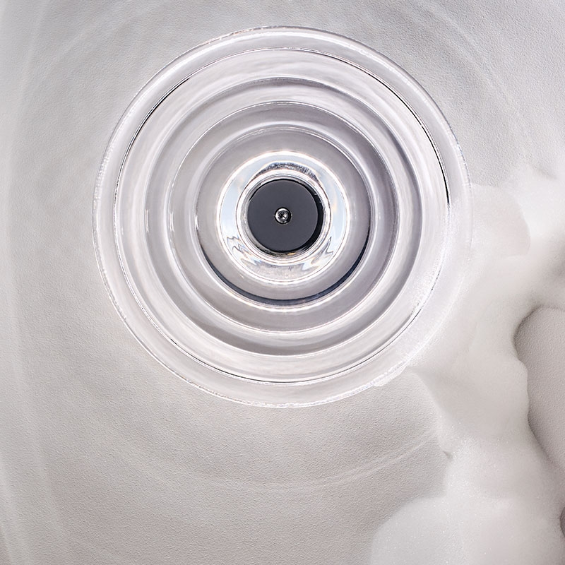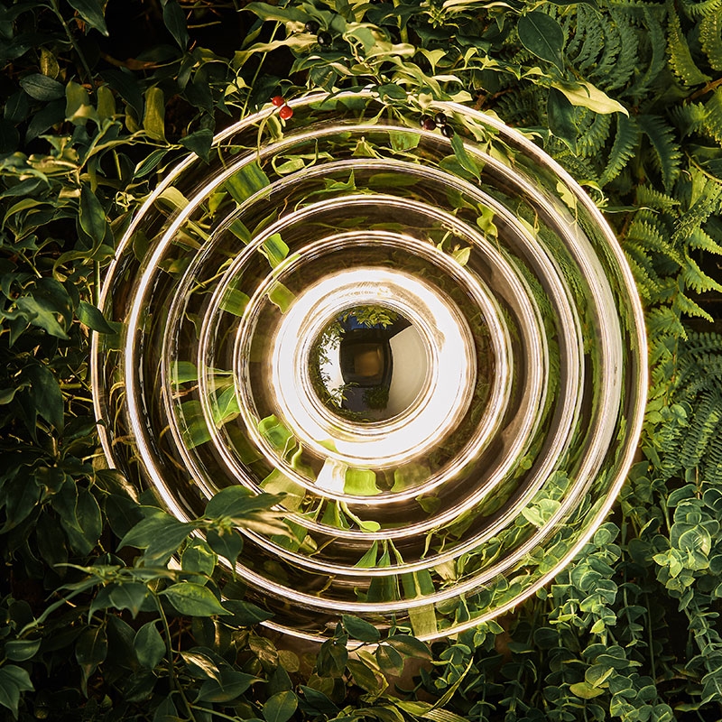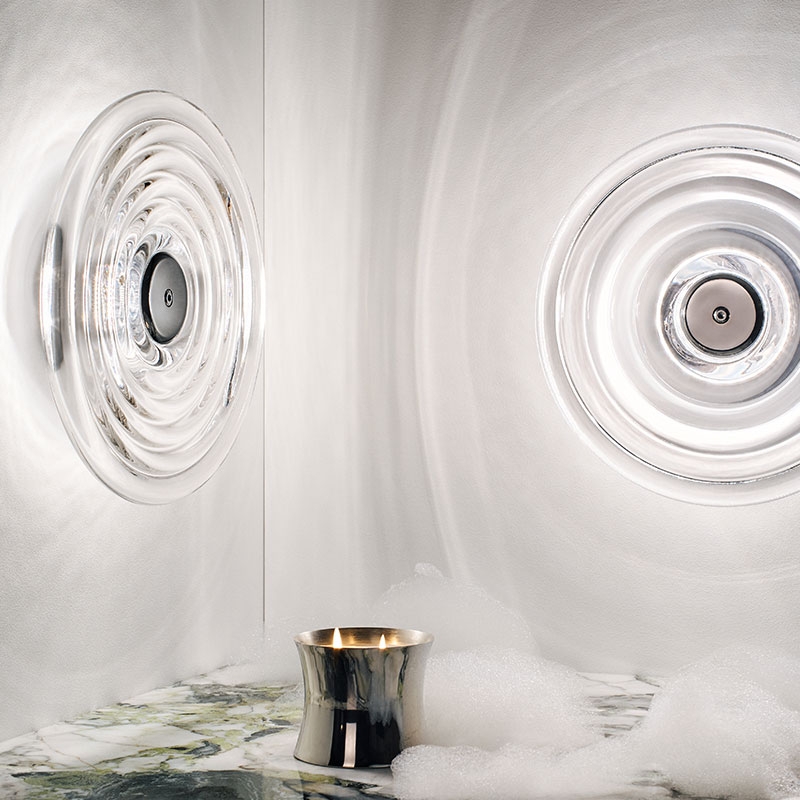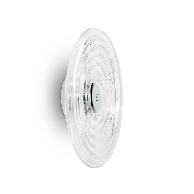 La lampada Press Surface Large è progettata per catturare e rifrangere la luce e proiettare ombre suggestive. Questa massiccia lampada scanalata è realizzata con spesse spirali di vetro puro. Dotata di un top cap metallico intercambiabile disponibile in oro, argento o nero, è accompagnata da un anello di LED caldi da 2700k.
