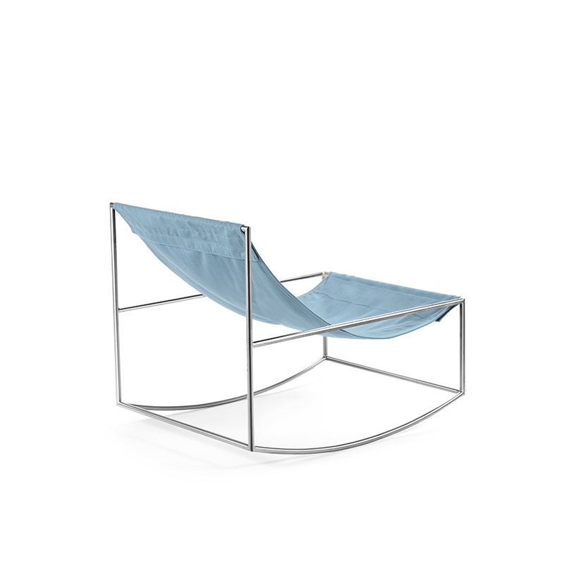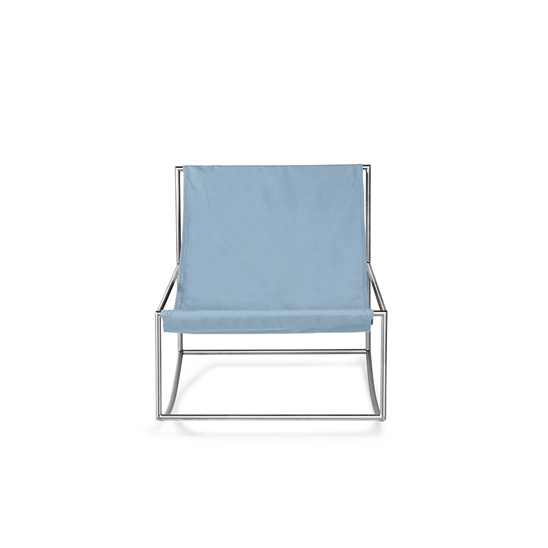 Valerie_objects presenta una versione da esterno della rocking chair di Muller Van Severen, forse il modello di sedia a dondolo più puro nella storia del design. Sia il telaio, realizzato in acciaio inossidabile lucidato elettroliticamente, sia il sedile in tessuto sono composti da materiali di alta qualità resistenti alle intemperie, rendendo il prodotto ideale sia per uso interno che esterno. I colori sono inconfondibilmente Muller Van Severen e danno nuova vita agli spazi esterni.