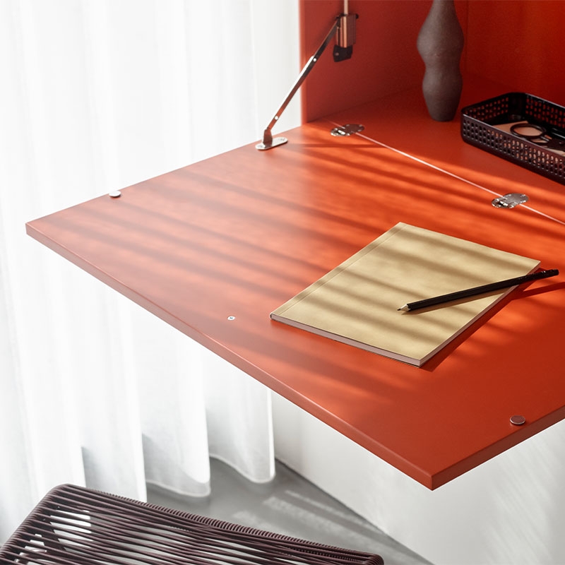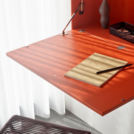 STUDIO è una scrivania ordinata: un piccolo angolo che nasconde discretamente il tuo ufficio a casa dopo l'orario di lavoro. STUDIO è dotato di una bacheca magnetica dotata di cinque magneti laccati nello stesso colore del modulo. Nella parte superiore, la scrivania dispone di un ripiano e di due piccoli vassoi per la vostra cancelleria che potrete estrarre facilmente all'occorrenza. STUDIO è una postazione di lavoro compatta e versatile, ideale per la stanza multifunzionale.