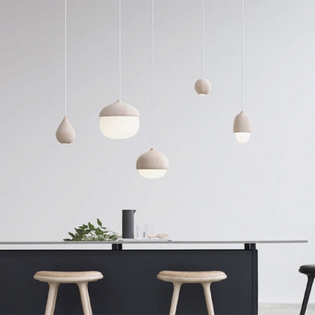 La lampada Mater Terho è disegnata dalla designer finlandese Maija Puoskari. Ispirata dalla natura, Terho significa "ghiande" in finlandese e si riferisce semplicemente alla forma organica e accattivante delle ghiande che si trovano in natura. Il calore e la bellezza del legno di tiglio naturale combinato con il vetro opalino lo rendono tanto contemporaneo quanto intramontabile. Il legno è certificato FSC® da silvicoltura europea responsabile e il vetro è soffiato a bocca in Polonia.