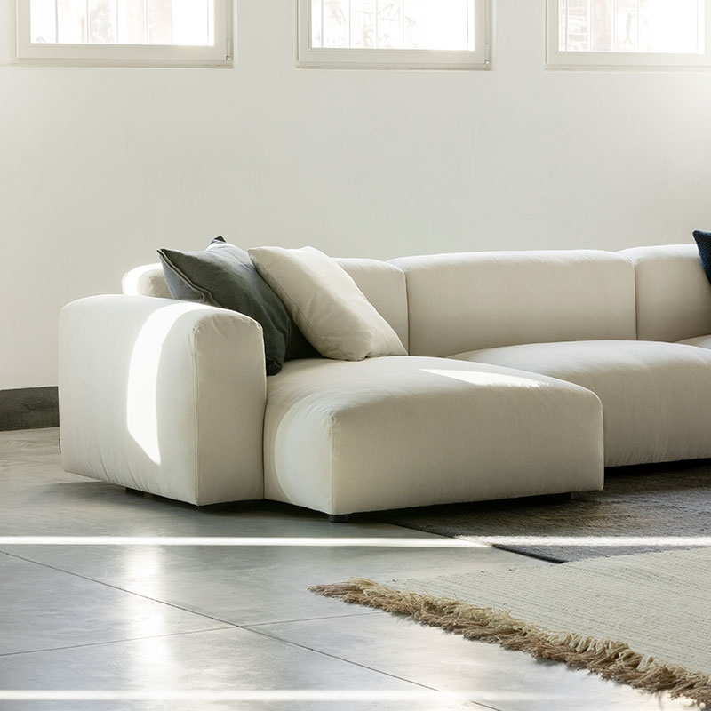 Ugo è un divano dallo stile urbano, disponibile in molteplici varianti di tessuto e colore.