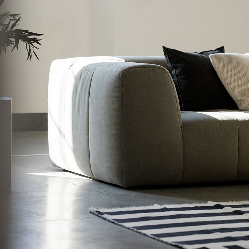 L'imbottitura in poliuretano espanso a densità differenziata assicura una seduta confortevole ed accogliente con un leggero effetto memory. Il rivestimento è completamente sfoderabile e di facile manutenzione; l'iconica fodera trapuntata di questo modello è disponibile in moltissime varianti colore. Il rivestimento è realizzato nel tessuto Sahara III by Kirkby, un morbido cotone.